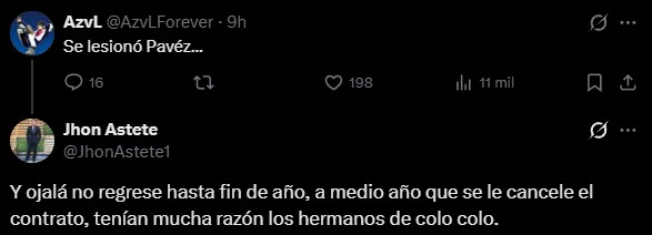 "Tenían mucha razón los hermanos de Colo Colo", “Muy lento el chileno, ya está lesionado”, “Ese Pavez ni por aquí ni por allá”, “Guede puso a Pavez sin pretemporada e inventó un equipo inédito con Girotti en punta y Montenegro de lateral debutando en copa”, fueron algunos de los comentarios.