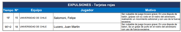 Un duro mazazo recibió Universidad de Chile luego que el Tribunal de Disciplina de la ANFP castigara al lateral izquierdo Felipe Salomoni con dos partidos de suspensión a causa de la expulsión ante Audax Italiano.