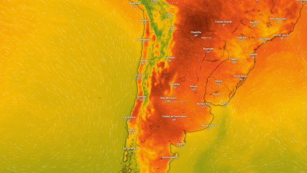 ACTUALIZACIÓN CONSTANTE Mapa muestra infernal calor que afectará a Santiago y la zona centro sur Entre este viernes y al menos hasta el lunes, las máximas podrían sobrepasar los 38°, marcando alerta por temperaturas extremas.