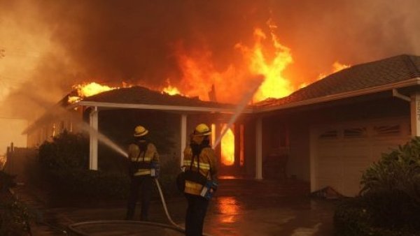 Árboles enteros arrancados de cuajo por los fuertes vientos, largas avenidas sin luz ni suministro eléctrico, semáforos que han dejado de funcionar y viviendas completamente carbonizadas completan esta desoladora postal de lo que un día fue el barrio residencial de ricos y actores famosos en las montañas de Santa Mónica.