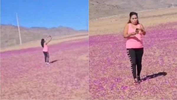 "¿Y a mí qué?": insólita respuesta de mujer increpada por pisar Desierto Florido Un video viralizado en redes sociales muestra a la aludida caminando y tomándose fotografías sobre la vegetación recientemente florecida.