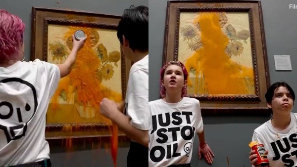 VIDEO | Activistas medioambientales lanzan sopa a 'Los girasoles' de Van Gogh Dos jóvenes ingresaron a la National Gallery de Londres para arrojar una lata de sopa de tomates en contra de una de las obras más importantes de occidente.