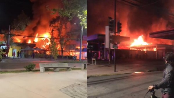 Incendio afecta a conocido restaurante en Los Andes El siniestro amenazaría a supermercado y una bencinera. Todas las Compañías de Bomberos de la comuna trabajan en el lugar.