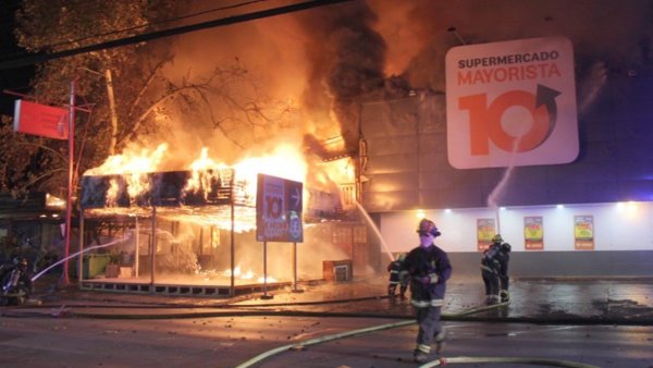 Un restaurante y un Mayorista 10 resultaron destruidos tras incendio en Los Andes El alcalde Manuerl Rivera confirmó que no resultaron civiles ni voluntarios lesionados o fallecidos.