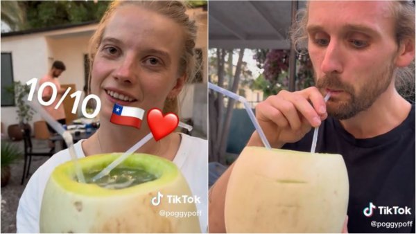 "Hay que tener cuidado": mexicanos se viralizan tras probar el melón con vino Los jóvenes ya habían hecho noticia en nuestro país por probar otros brebajes nacionales, como el fanshop y el jote.