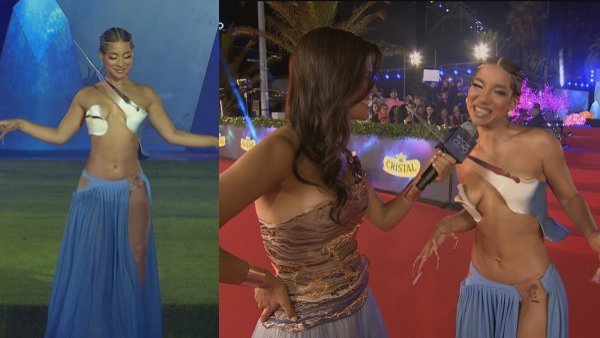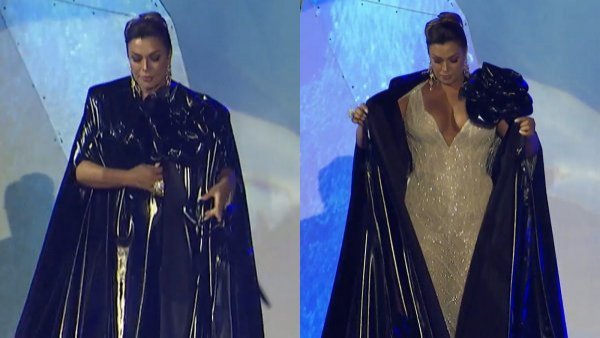 Se complicó, pero triunfó: Marlen Olivarí sorprendió con vestido blanco La show woman utilizó una capa que le presentó complicaciones al momento de desatarla.