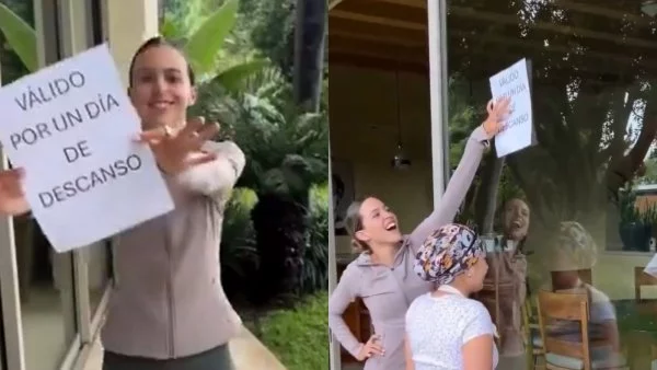 Acusada de "humillar" a trabajadoras: empresaria rifó día libre con polémica dinámica "Válido para un día de descanso" decía la hoja que las colaboradoras debían atrapar con su cabeza.