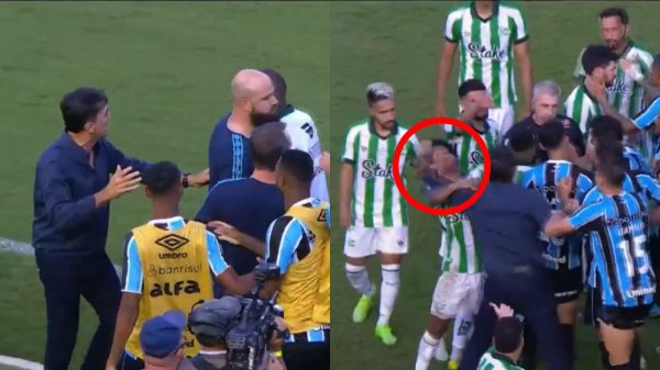 Escándalo en Brasil: Gustavo Quinteros agredió a un jugador rival El técnico de Gremio estalló tras una revisión del VAR en los descuentos.