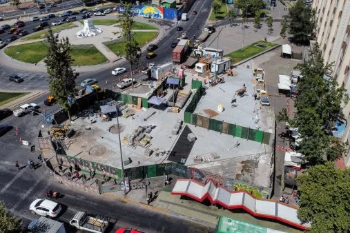 FOTOS | Así avanzan las obras del eje Alameda-Providencia en Plaza Baquedano El proyecto contempla un aumento de 9.952 metros cuadrados de áreas verdes y la disminución de la superficie para tránsito vehicular privado.