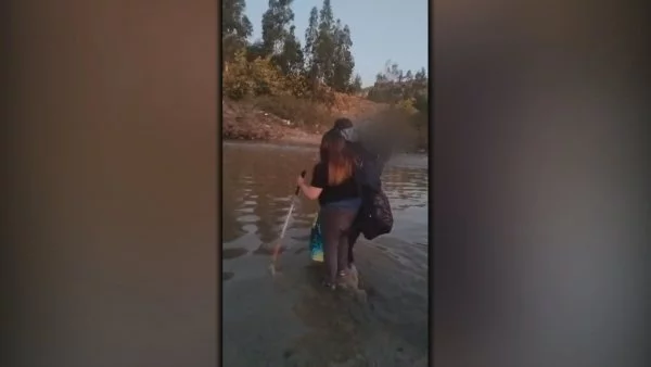Padre con discapacidad visual cruza estero Marga Marga con su hijo en brazos para llevarlo al colegio Es un trayecto que realiza todos los días producto de la falta de una pasarela, que fue arrasada por la crecida de las aguas durante el mes de junio.
