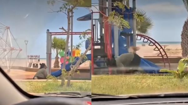 ¡Llegaron los “therian” a Chile!: Pareja fue captada y el VIDEO se hizo viral La pareja brincaba por la plaza de juegos con una cola y con caracterización de animal en su rostro.