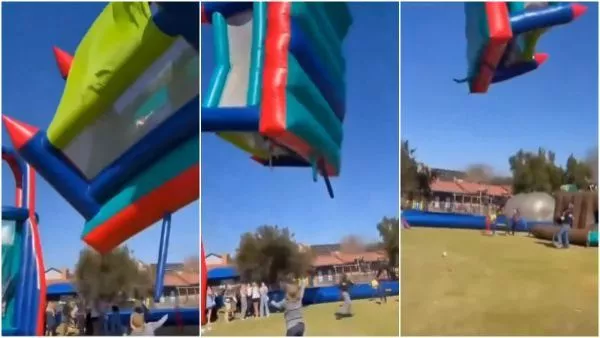 Niño sufrió fractura de cráneo: castillo inflable sale volando con niños en su interior En las imágenes se observa el momento exacto en el que el castillo inflable se eleva por el cielo. Asimismo, se ve cuando se caen los menores de edad y diversos objetos.