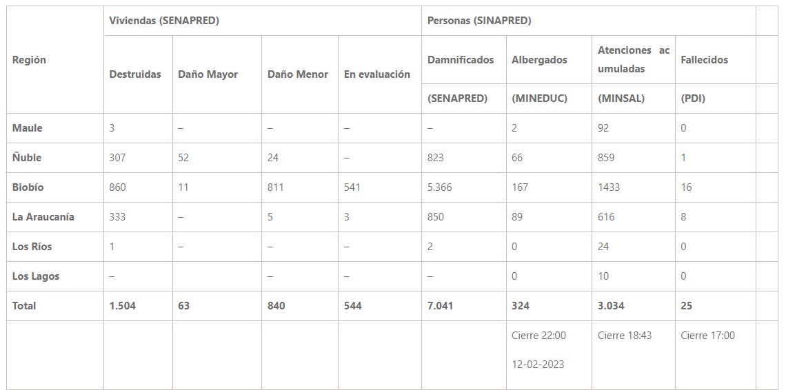 La cifra de fallecidos, cuyo conteo lleva la Policía de Investigaciones, se mantiene en 25.