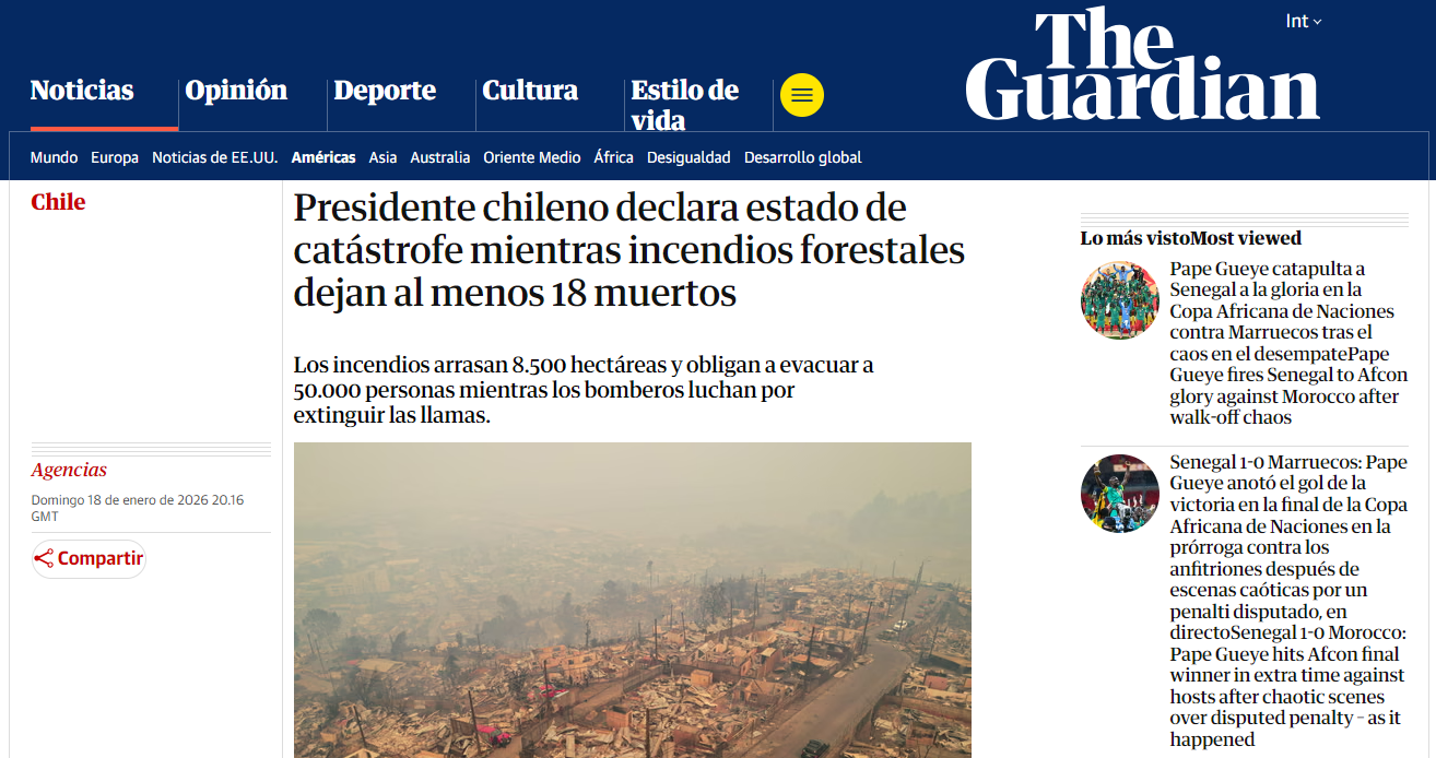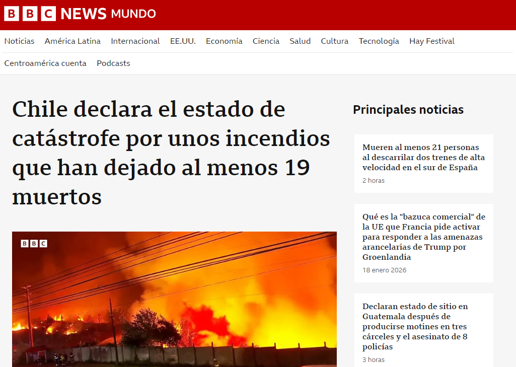 "Edificios derrumbados y coches carbonizados": Así reaccionó la prensa internacional por los incendios forestales en Chile