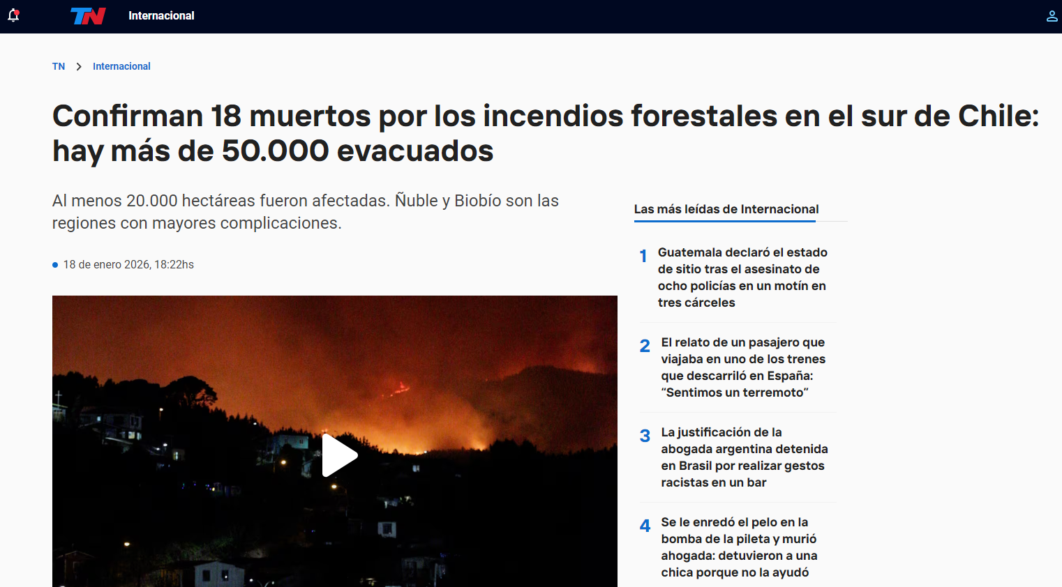 En esa misma línea, el portal trasandino TN,  aseguró que las llamas provocaron el "colapso de rutas y obligaron al desalojo de centros asistenciales, como el hospital de Lirquén".