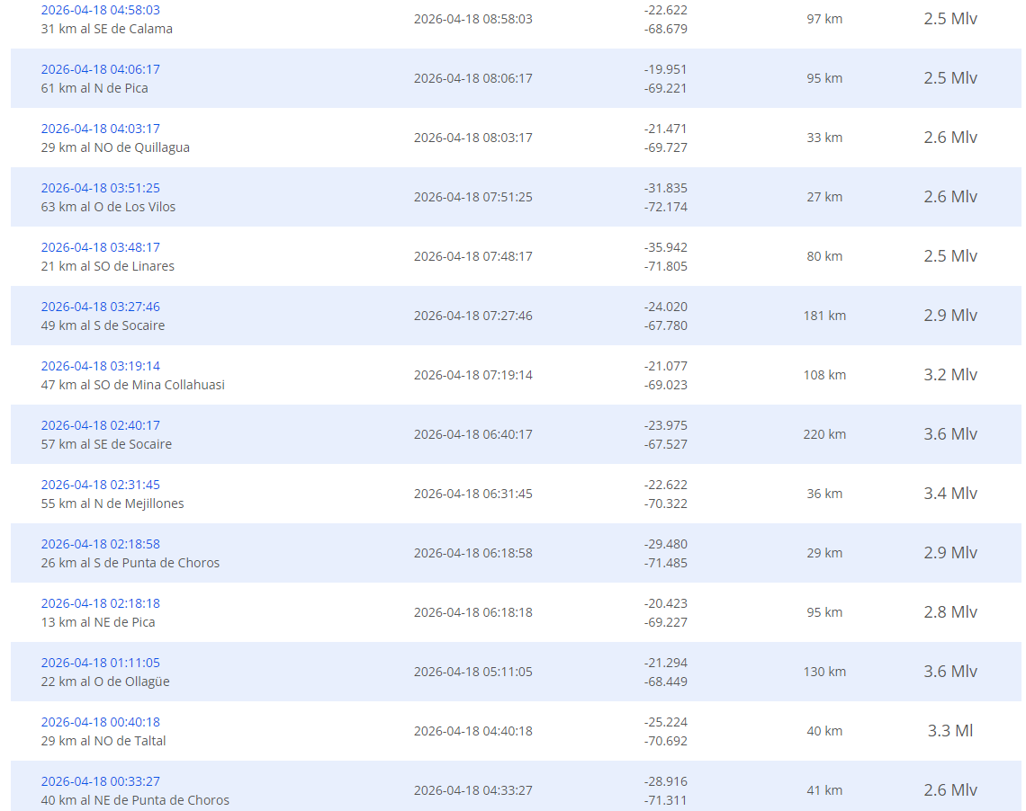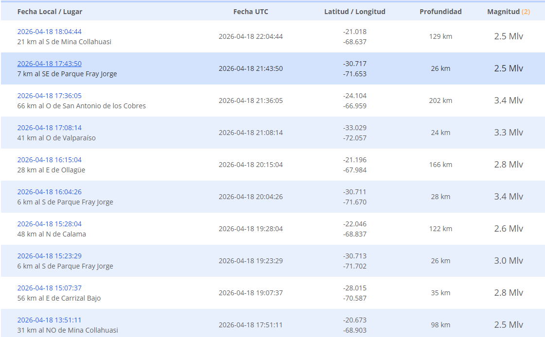 Para conocer los últimos sismos registrados en el país, haz click ACÁ