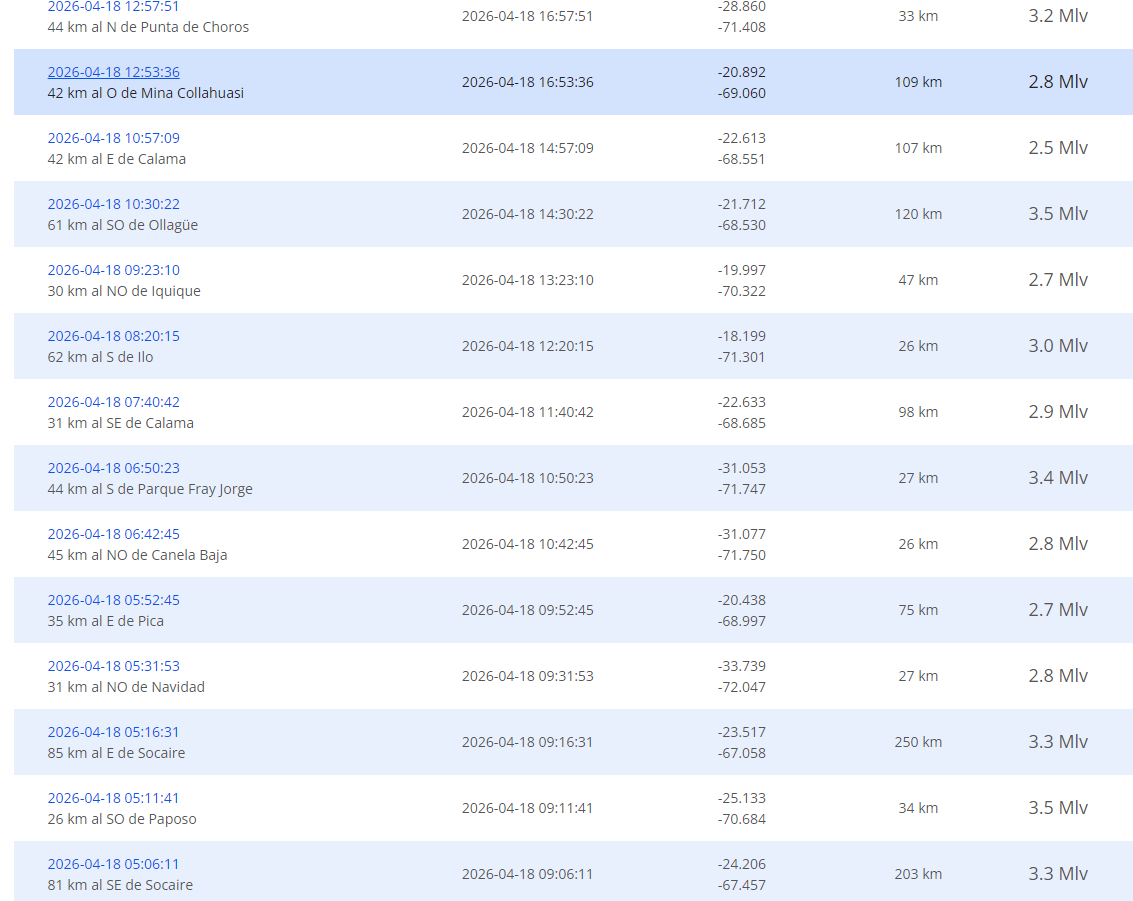 Los movimientos registrados en el norte, desde Tarapacá hasta Coquimbo, principalmente, tuvieron como epicentro zonas como Ollagüe, Parque Fray Jorge y Mina Collahuasi.