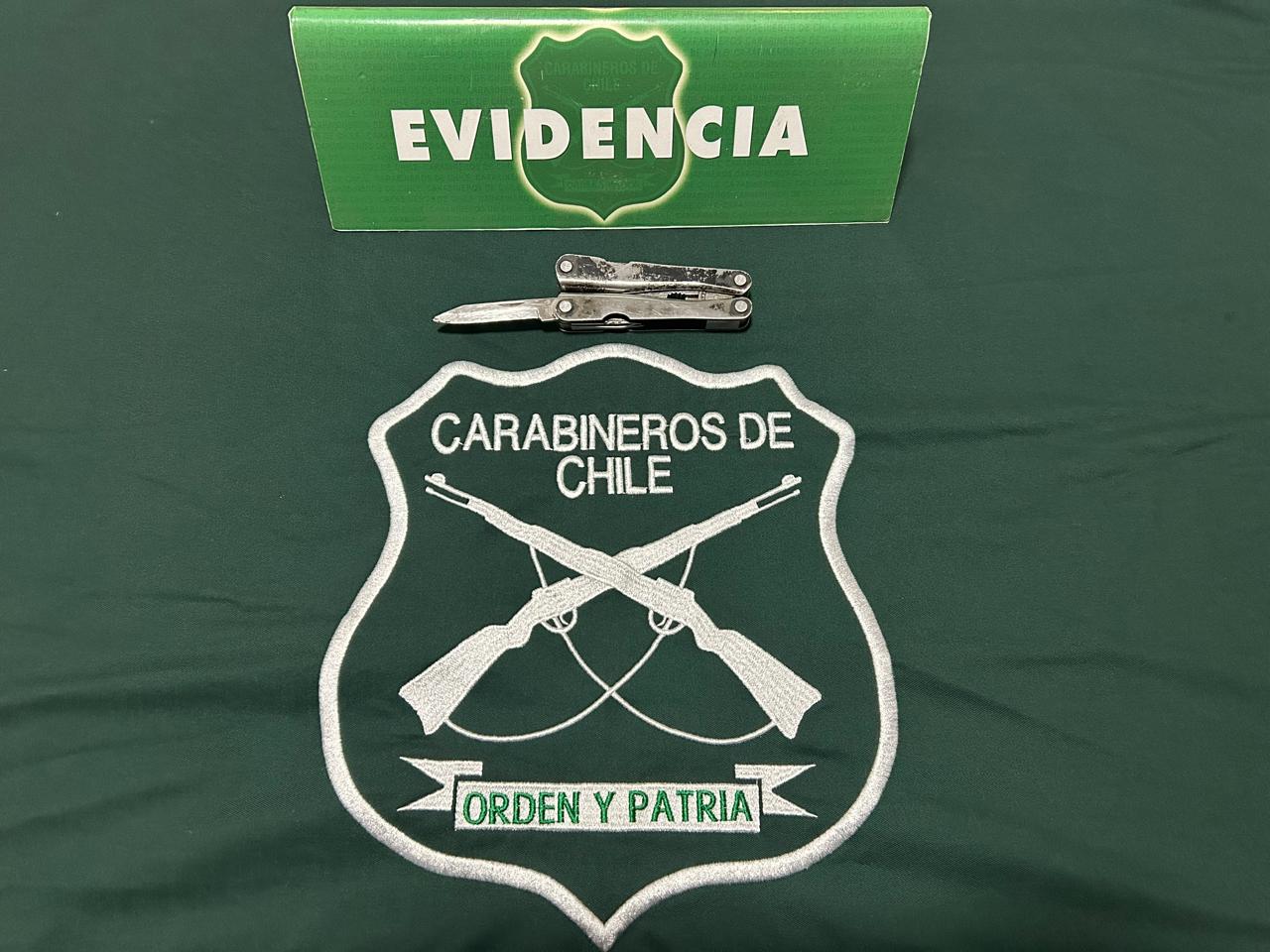 "Carabineros lo fiscalizó y no solo encontró el arma blanca, sino que al interior de su bolsillo, en una improvisada bolsa, que este sujeto había hecho con un calcetín negro, tenía tres cartuchos de munición de 40, 44 y 45 milímetros", explicó la mayor, Carolina Constanzo.