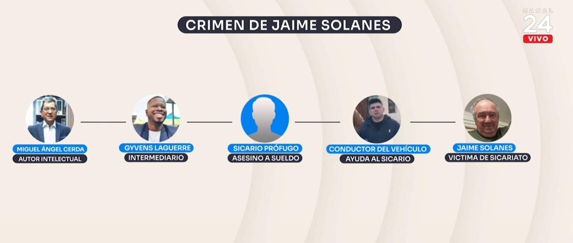 Según la declaración de Gyvens Laguerre, exintegrante de los Reggaeton Boys e imputado como articulador operativo del crimen, Miguel Ángel Cerda habría proporcionado fotografías de Jaime Solanes, de su domicilio, de su empresa y de los vehículos que utilizaba. Además, habría dado una instrucción directa respecto del uso de la violencia.