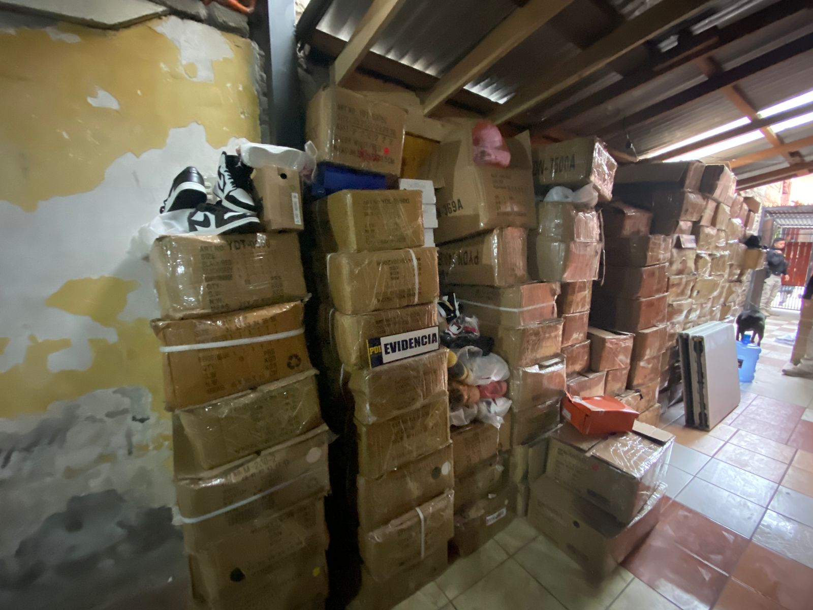 Producto de lo anterior, se solicitó una orden de entrada y registro, logrando la incautación de más de 3.200 zapatillas de diferentes marcas reconocidas a nivel internacional, 520 prendas de vestir, 2000 etiquetas y 700 cajas de diversas marcas.