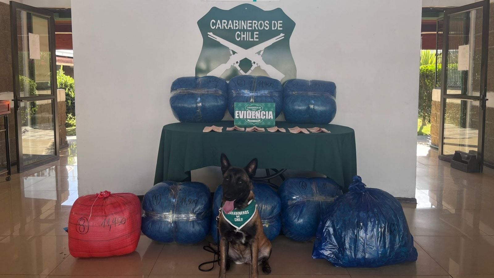 Al revisar el equipaje, Carabineros se percató de cuatro sacos que mantenían en su interior ocho paquetes de hoja de coca que tenían un peso bruto de 91,9 kilos.