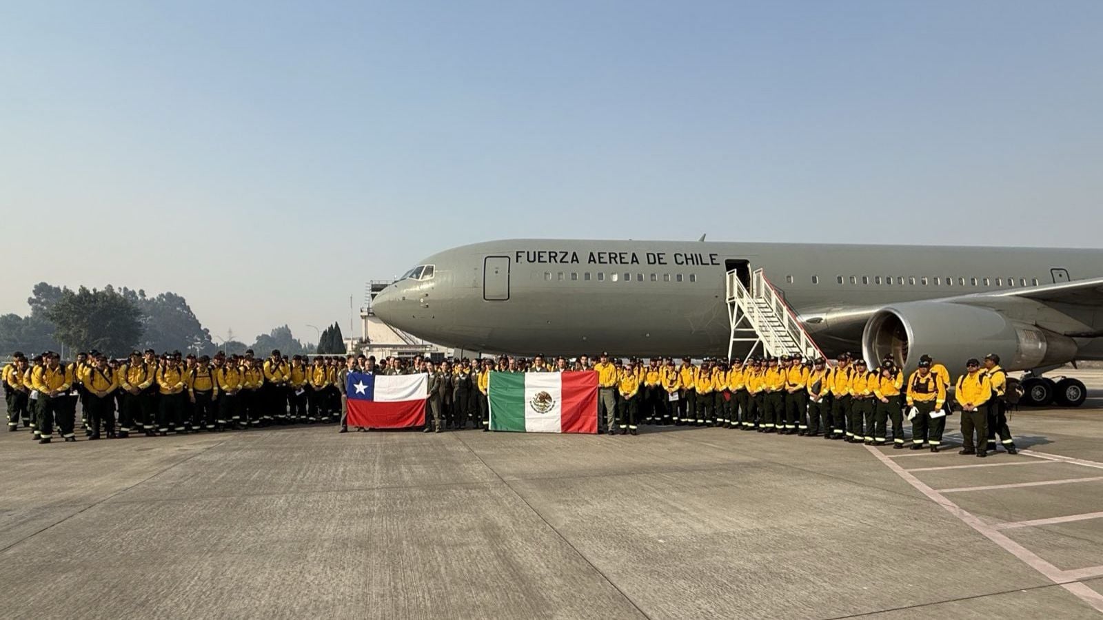 Gracias a la coordinación entre Cancillería, el Ministerio de Defensa, Conaf y la Fuerza Aérea de Chile, esta mañana aterrizaron en Concepción 145 brigadistas y más de 360 kilos de carga para el combate de incendios desde Guadalajara.