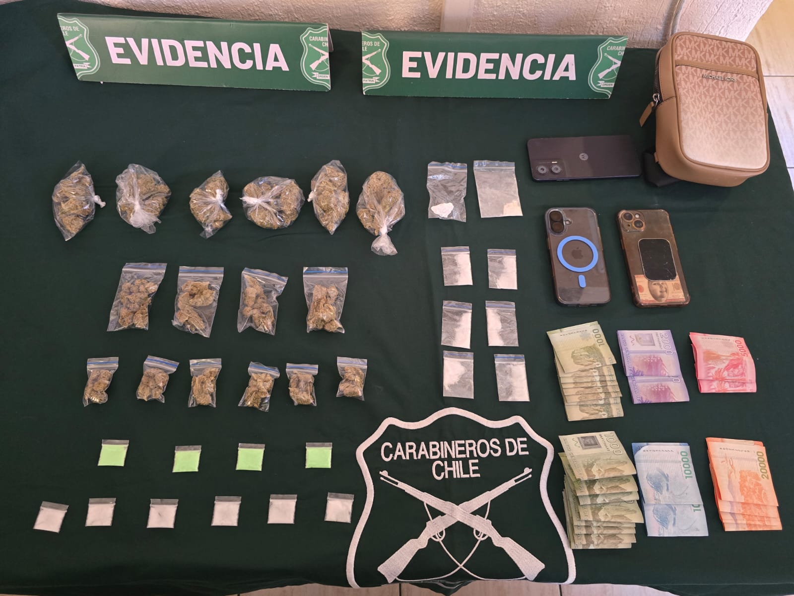 En específico, Carabineros incautó 16 bolsas plásticas de marihuana; 14 bolsas plásticas cocaína y otras bolsas de ketamina.