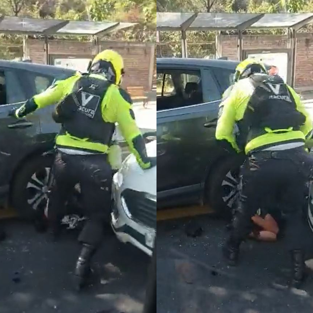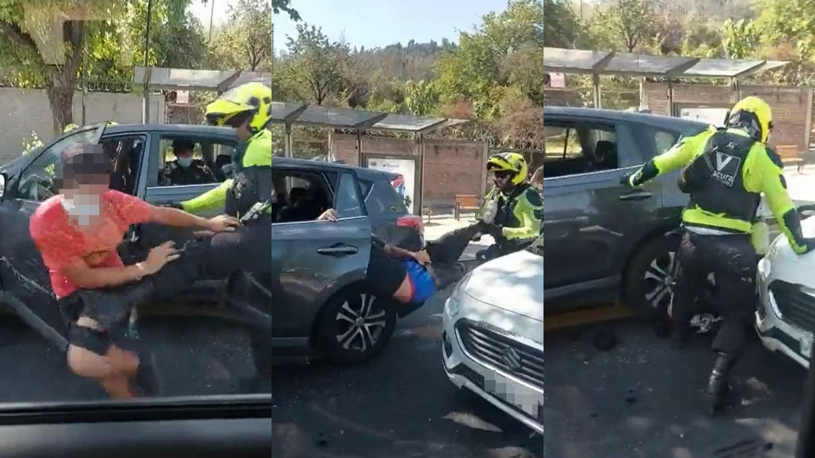 La captura de los adolescentes fue registrada por otro conductor, dando cuenta de cómo los efectivos municipales redujeron a uno de los sujetos.