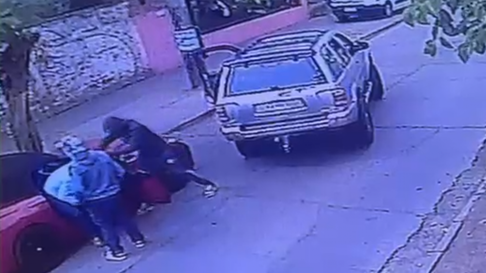 Las dos víctimas fueron abordadas en la calle Nueva La Obra cuando iban a bordo de un vehículo marca BMW. En el registro se observa cómo fueron interceptados por una camioneta y luego intimidados.