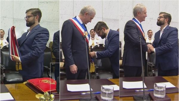 Fue en este momento en que Boric entregó a Núñez su banda presidencial, dando paso a la parlamentaria que invistió a Kast con su propia banda presidencial.