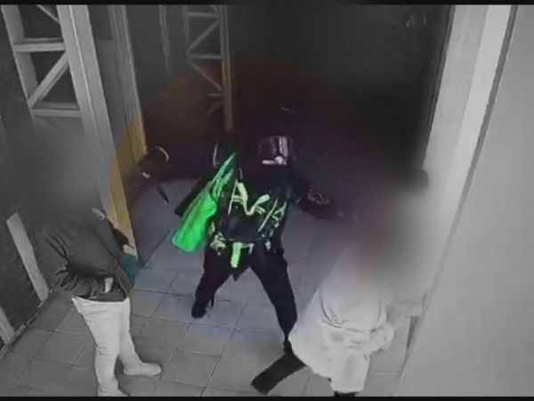 Las imágenes muestran al joven saliendo del lugar vestido de negro y encapuchado.