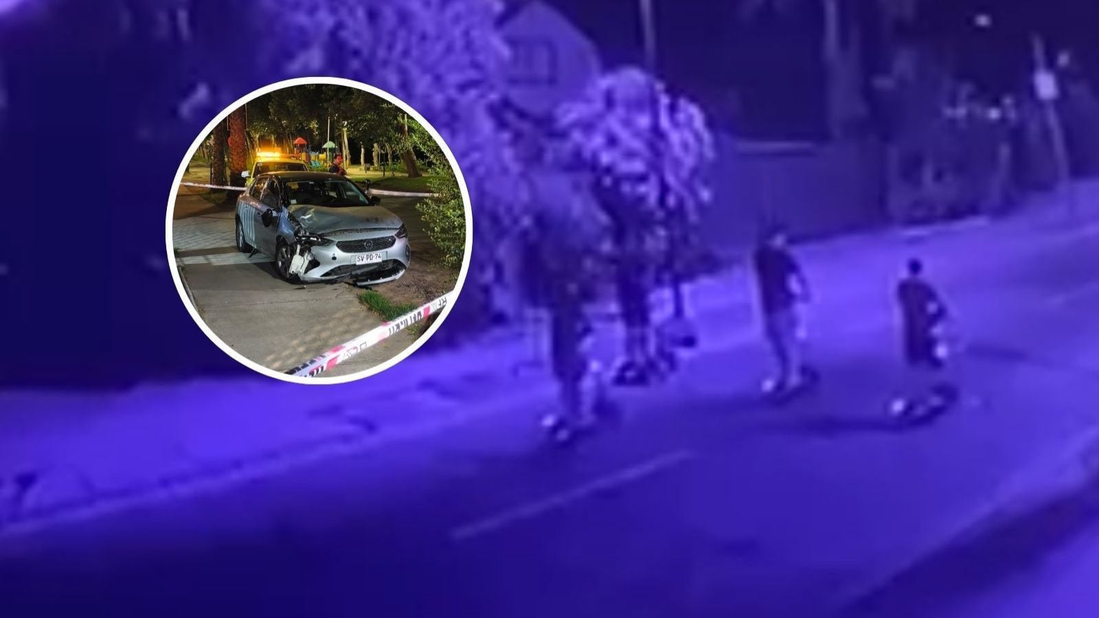 Según el registro, cuatro jóvenes avanzaban a velocidad moderada, cada uno en un scooter, por el sector de Camino del Roble, cuando repentinamente un automóvil aparece en escena circulando a alta velocidad y los atropella de forma directa.