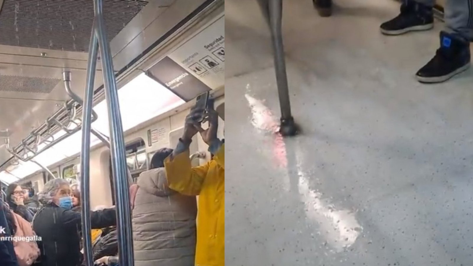 En el registro se ve cómo desde la parte superior comenzó a caer agua en gotas de manera intensa, generando la sorpresa de los usuarios que en ese momento viajaban.