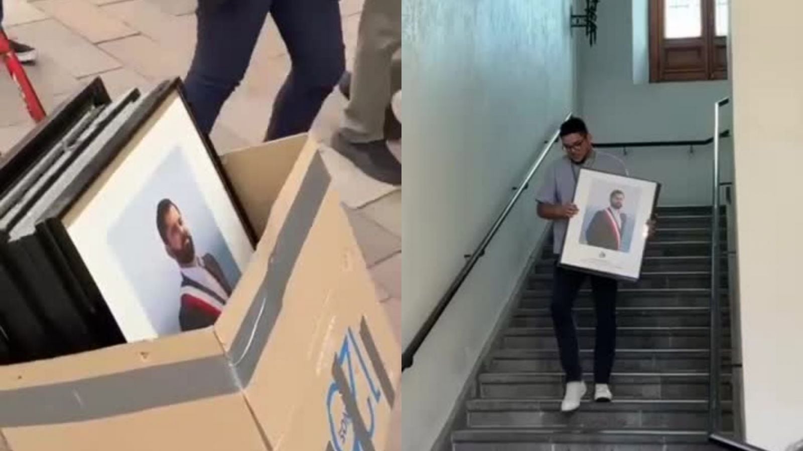 En la misma línea, se dio inicio al retiro de los marcos de las fotos oficiales del actual Presidente Gabriel Boric de La Moneda.