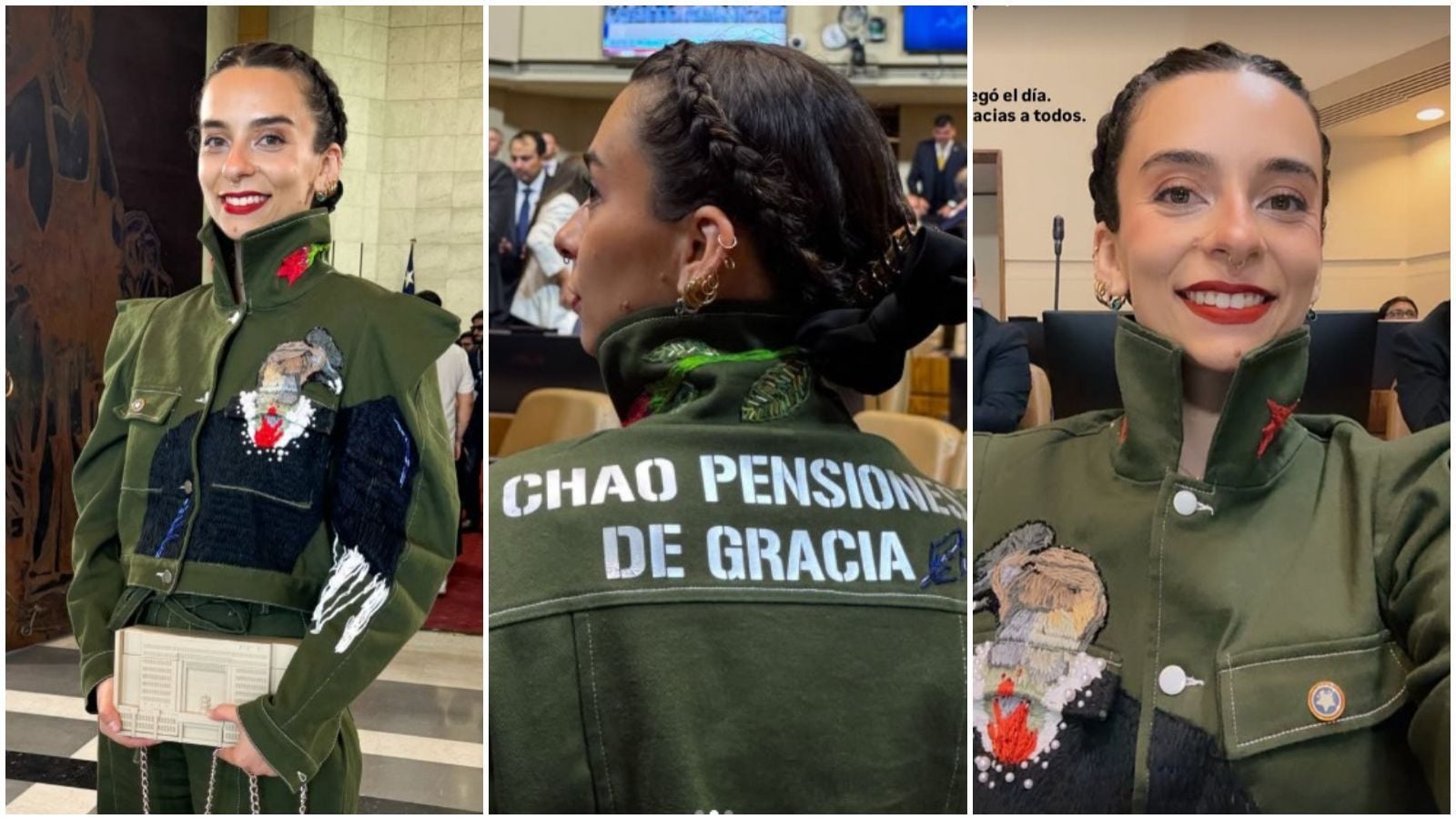 La joven diputada fue captada posando con este vestuario, al frente del parlamentario Gustavo Gatica, quien perdió la visión por el impacto de balines durante el estallido social de 2019. El hecho fue interpretado por diversos usuarios como una provocación o una falta de sensibilidad.
