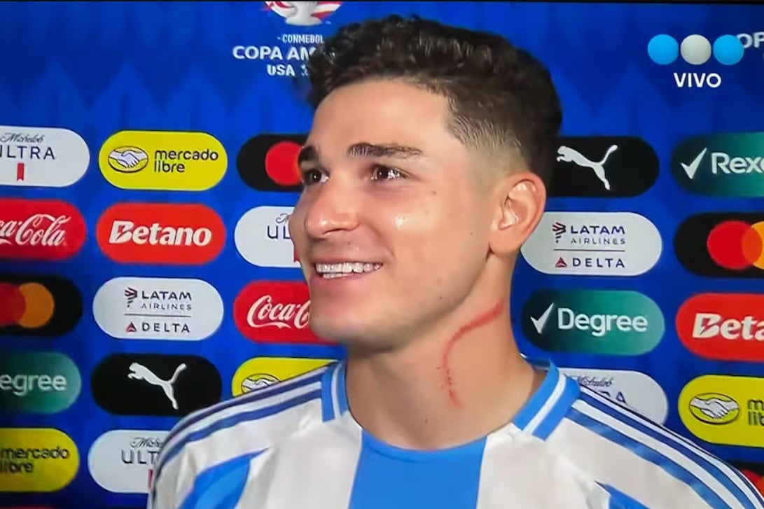 Argentina tuvo un gran arranque en la Copa América 2024 al vencer por 2-0 a Canadá en el partido inaugural. El encuentro tuvo varias incidencias llamativas, entre ellas la impactante marca en el cuello que sufrió Julián Álvarez, autor del primer gol de la albiceleste.