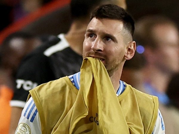 El capitán de la albiceleste, al borde de la cancha tras salir lesionado, fue captado justo cuando el árbitro pitó el final del partido.