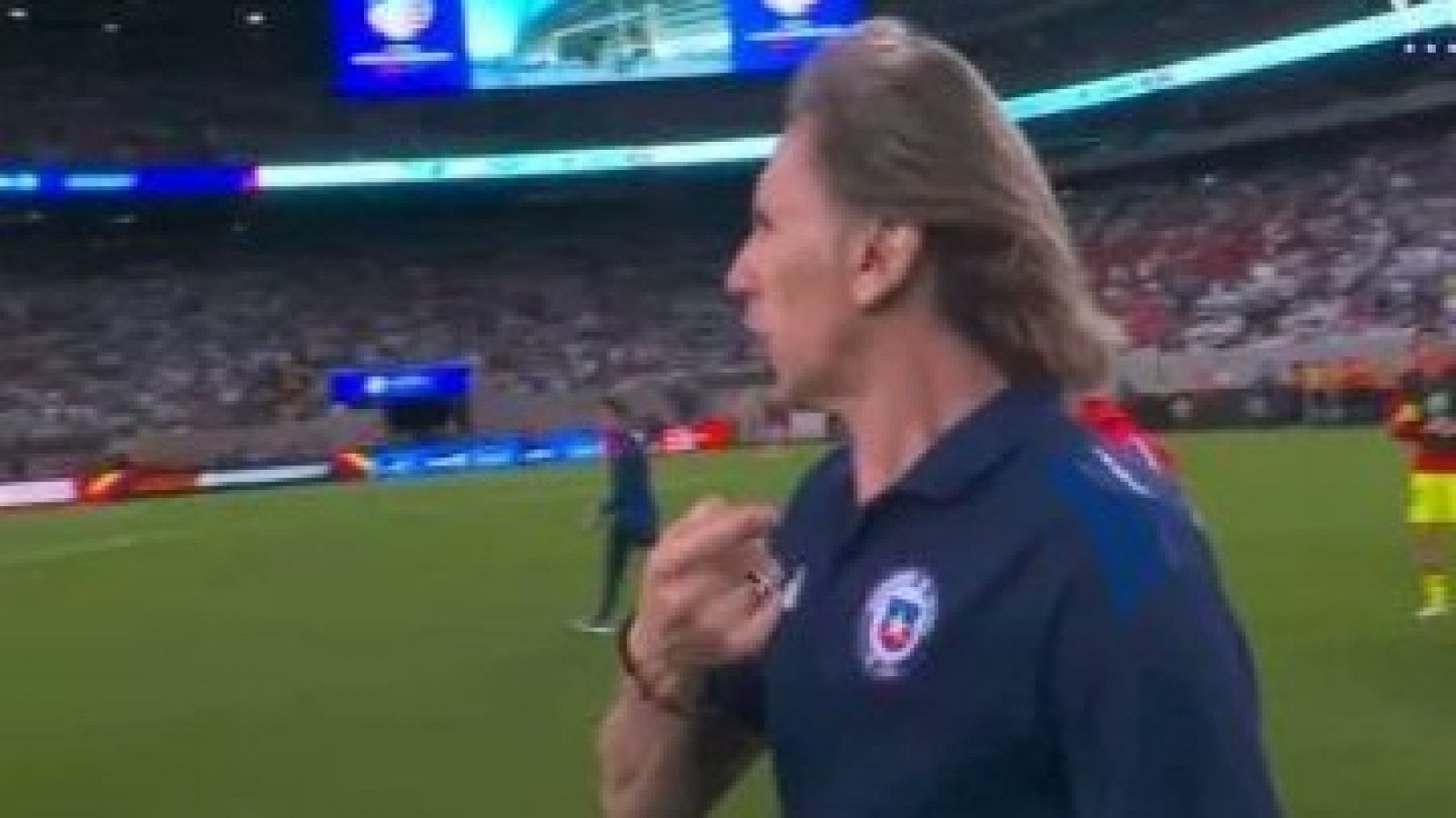 Ricardo Gareca fue captado retando a los jugadores de la Selección Chilena por no reclamar al árbitro por las jugadas polémicas del primer tiempo.