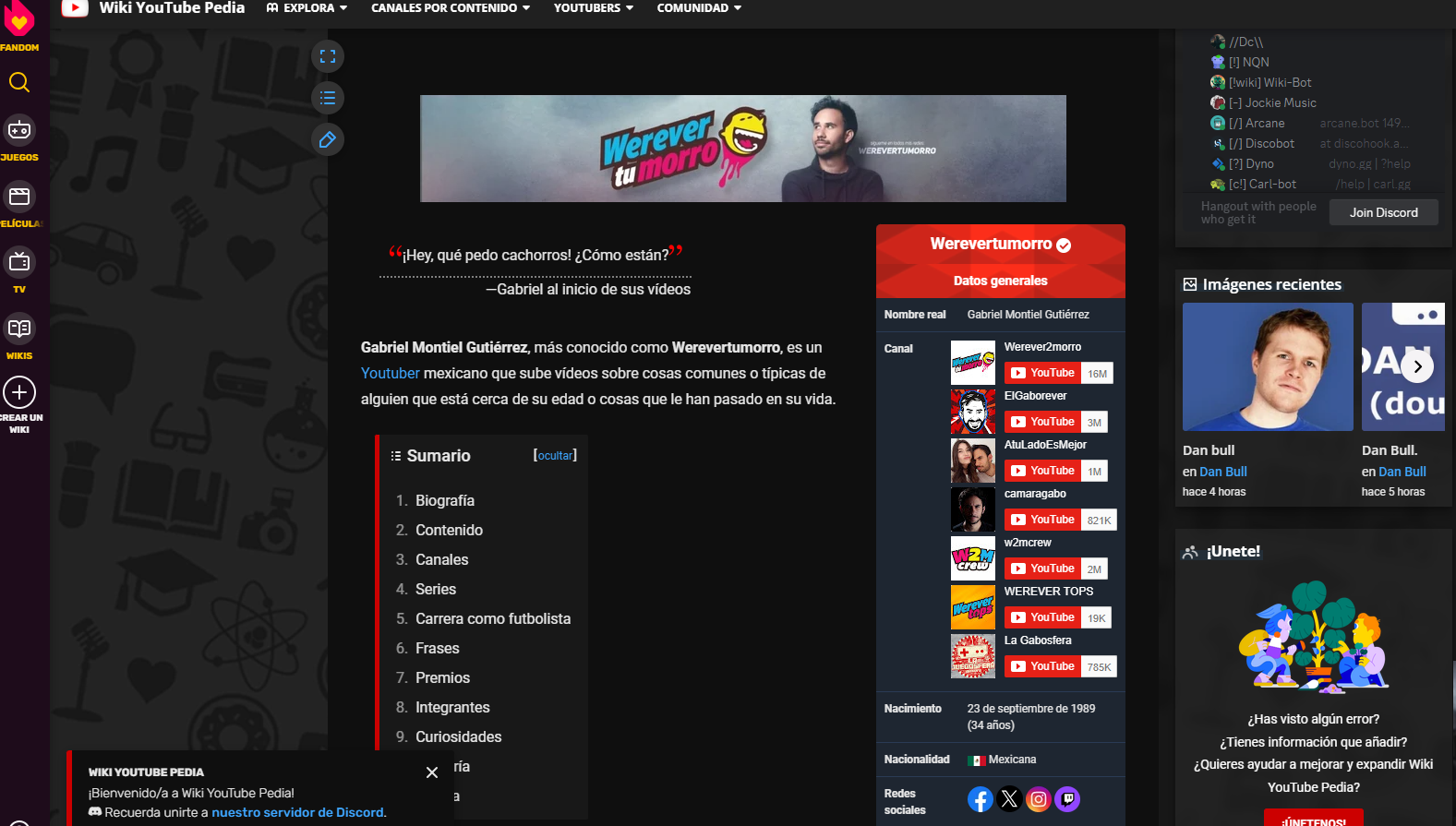Montiel es un influencer mexicano de 34 años, conocido principalmente por sus seudónimos Werevertumorro y Gaborever. Su principal contenido se difunde a través de su canal de YouTube, donde tiene más de 16 millones de suscriptores.