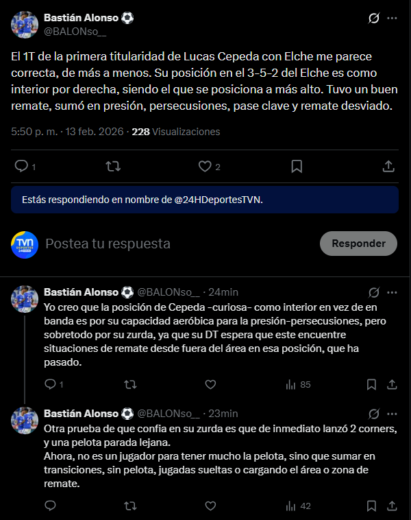 Extraña la posición que está ocupando Lucas Cepeda en estos 20 minutos. #ElcheOsasuna
