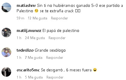 Si en general las últimas publicaciones de Santos en Instagram no superan los 30 comentarios, tras ser confirmado en el Juve Stabia, hay más de 100 mensajes de los cuales muchos de ellos son de fanáticos de Colo Colo.
