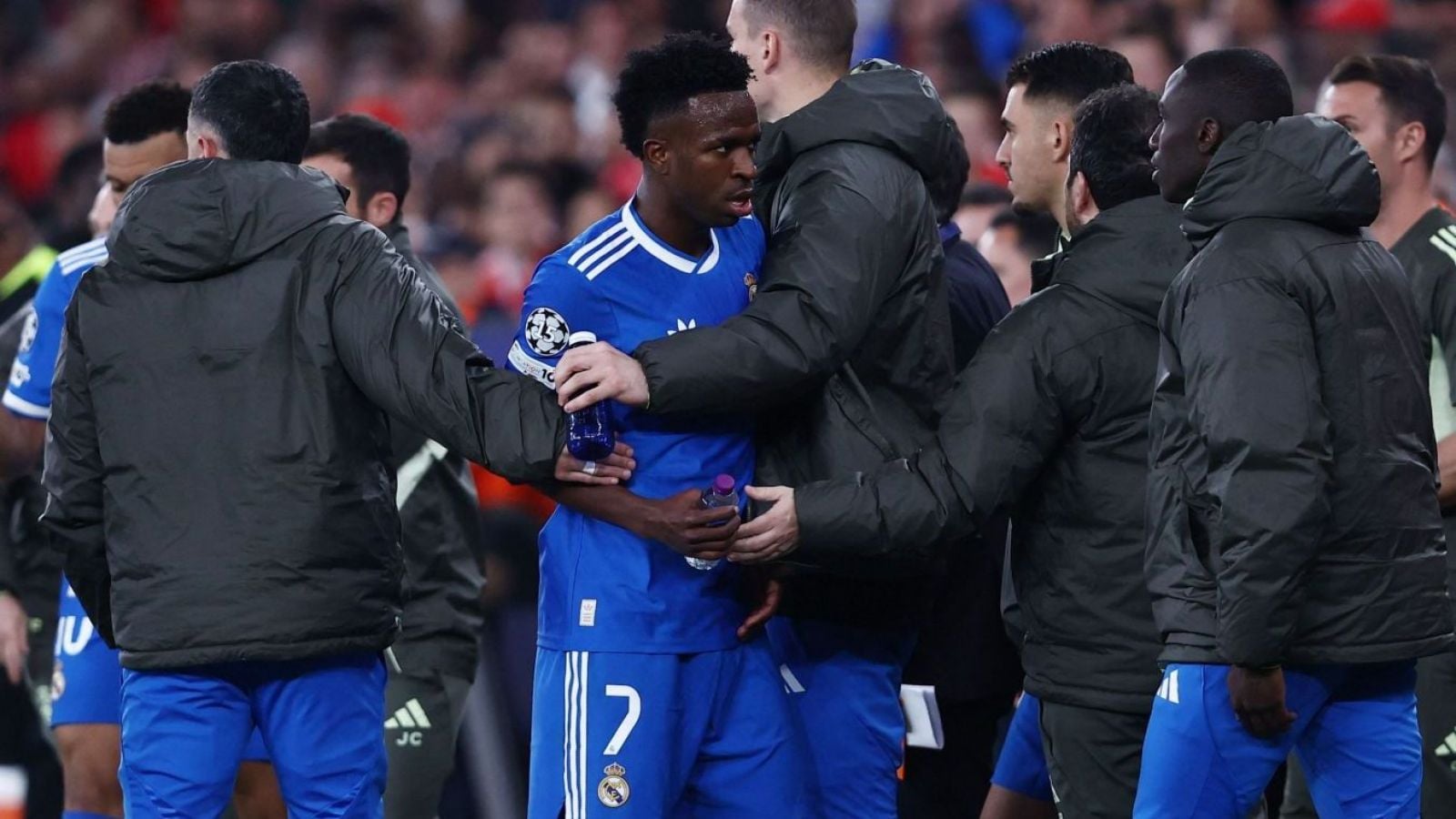 Asimismo, integrantes de los banquillos tuvieron una fuerte discusión mientras Vini estaba sentado a modo de protesta por lo ocurrido.