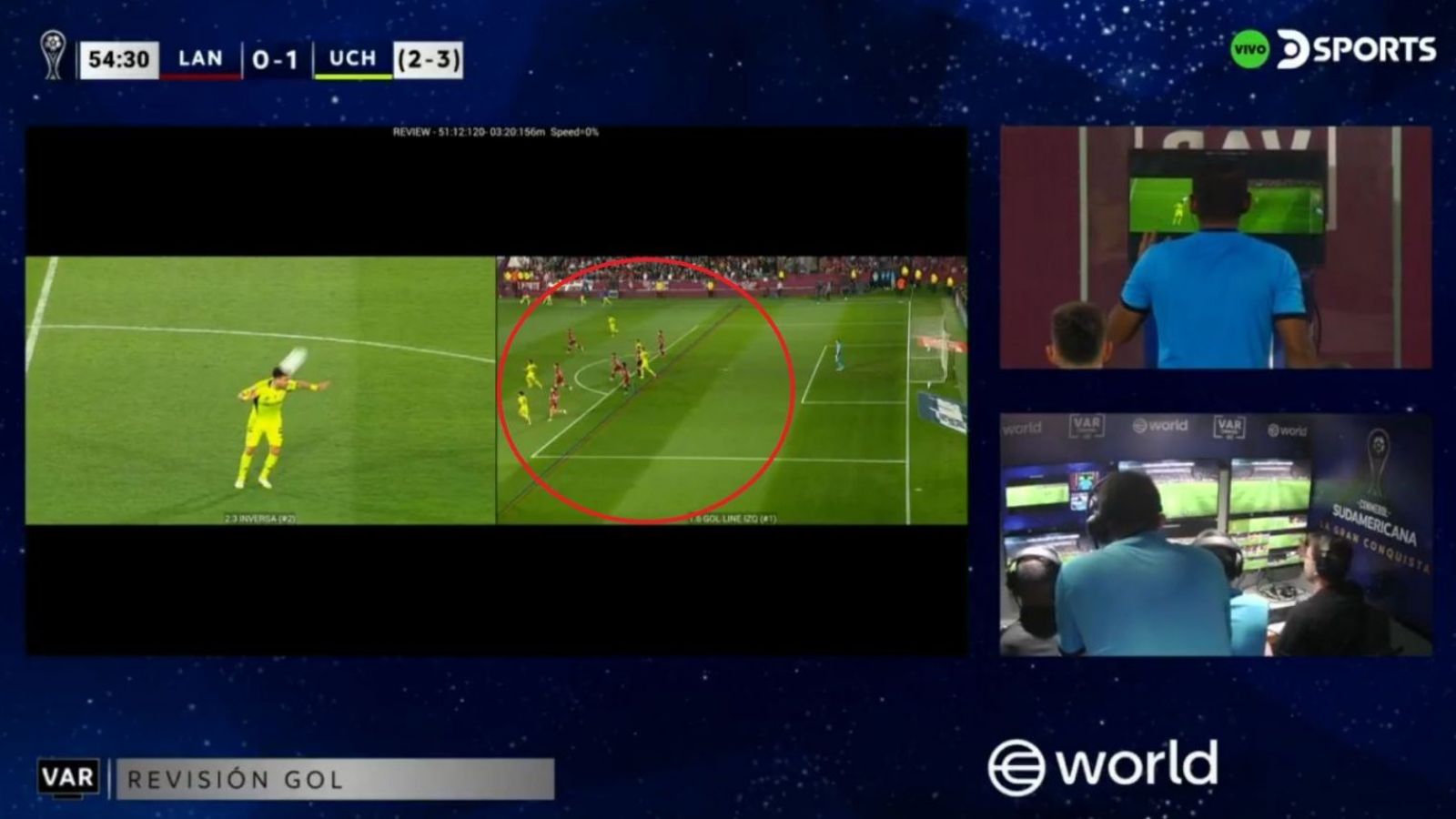 Tras la revisión en el VAR, el árbitro observó fuera de juego de Di Yorio en el inicio de la acción y NO convalidó el tanto chileno.