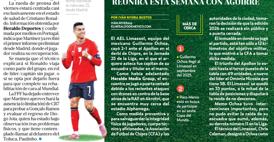 ¿Qué ocurrió? En la página 43 de la edición impresa del lunes 9 de marzo -sección Deportes-, se publicó un artículo bajo el título "La buena: CR7 viene… la mala, no jugará", donde aludió al presunto viaje de Cristiano Ronaldo para los amistosos que Portugal sostendrá contra México y Estados Unidos en la fecha FIFA de marzo.