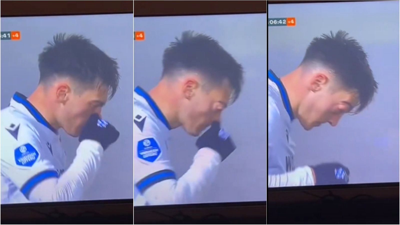 De un momento a otro, el globo ocular se hinchó, quedando todo grabado en la transmisión del cotejo. Seguramente la presión hecha para sonarse generó un problema a nivel del ojo.