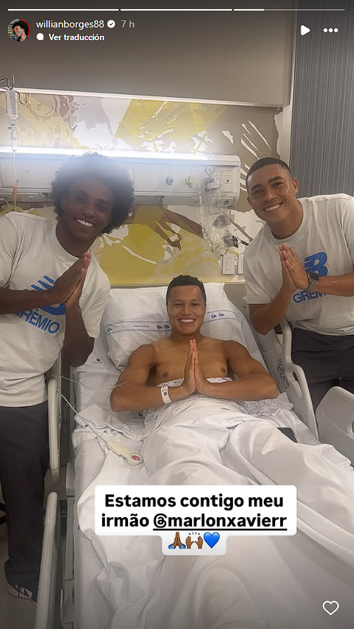 Cabe mencionar que horas después el compañero de Marlon, Willian Borges compartió una selfie junto al malogrado lateral desde el hospital donde se encuentra internado, diciéndole "estamos contigo hermano".