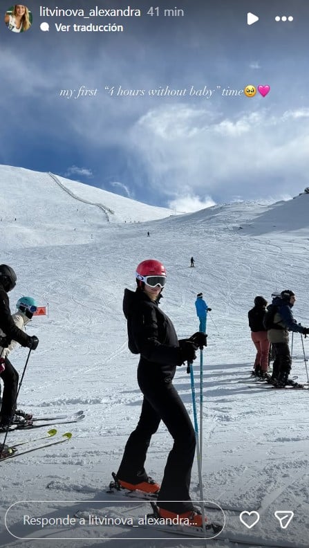Y es que Litvinova compartió en su cuenta de Instagram una serie de imágenes en las que se le puede ver disfrutando en solitario de una sesión de esquí en Sierra Nevada, un centro ubicado en Granada, España, las cuales acompañó de un potente mensaje: "Mis primeras 4 horas sin bebe", junto a emojis de corazón y un rostro emocionado, dejando en claro el periodo demandante en que se encuentra con su hija Bella Mía.