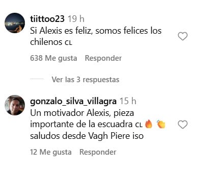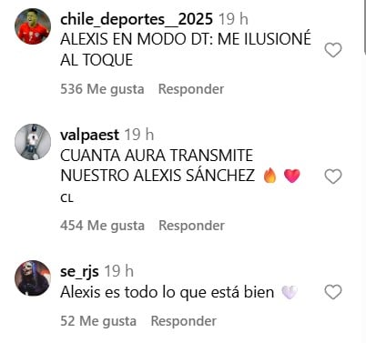 "Alexis en modo DT: me ilusioné", "cuánta aura transmite nuestro Alexis", “Alexis definitivamente es la alegría”, “Un líder dentro y fuera”, “Alexis es todo lo que está bien” y "Un motivador Alexis, pieza importante de la escuadra", fueron algunos de los comentarios.