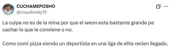 La imagen no pasó inadvertida para los seguidores del ex Colo Colo, quienes lo criticaron duramente por comer pizza a horas del partido y en medio de su lucha por ganarse un puesto en el elenco español.