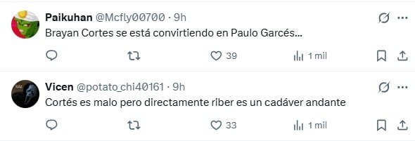 El "blooper" de Cortés no pasó inadvertido para los hinchas tanto en Chile como en Argentina, quienes se volcaron a las redes sociales para comentar lo ocurrido con el arquero nacional.